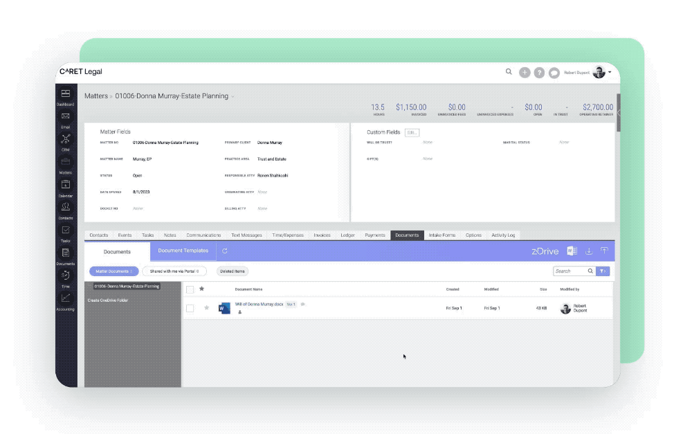 - Legal document management software like CARET Legal reduces delays, confusion, and versioning issues by keeping files organized and tied to case activity.